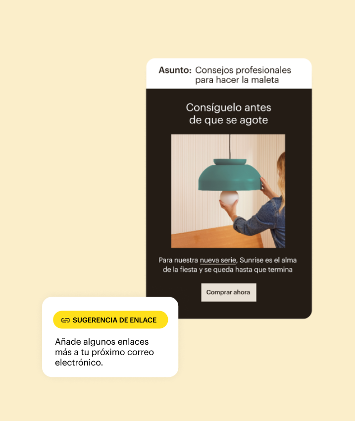 La mayoría de las herramientas de marketing por correo electrónico solo indican el desempeño de tus campañas. Te contamos por qué. Nuestro Optimizador de contenido analiza millones de datos de las campañas con mejor rendimiento y hace sugerencias personalizadas para mejorar el texto, las imágenes y el diseño en futuros correos electrónicos.