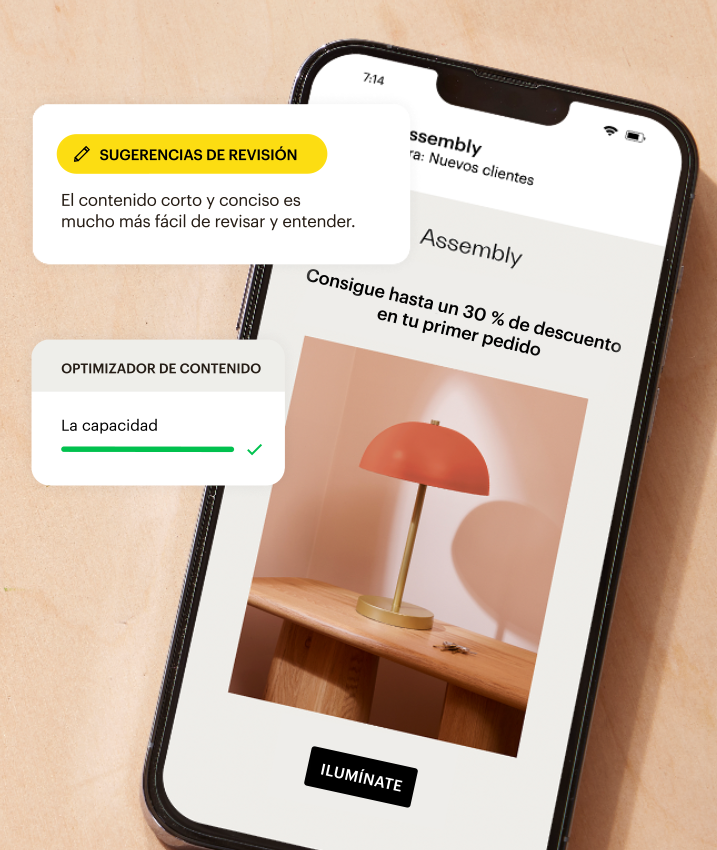 Conoce cómo se comparan tus correos electrónicos con las campañas de mayor rendimiento en tu industria y obtén sugerencias basadas en datos para mejorar tu texto, imágenes y diseño.